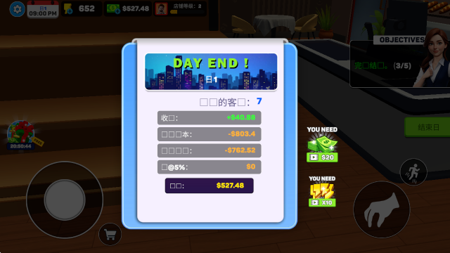 7、完成一天的经营后即可结算自己的奖励。