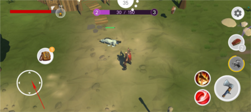 1、进入游戏之后,滑动左下角的摇杆进行角色的移动;