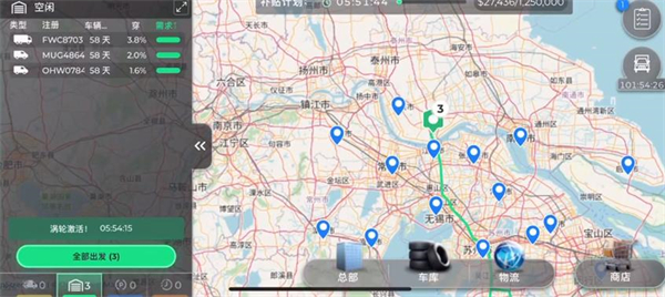 3、选好卡车后就可以开始运送货物,点击全部触发就可以派遣卡车来完成订单。