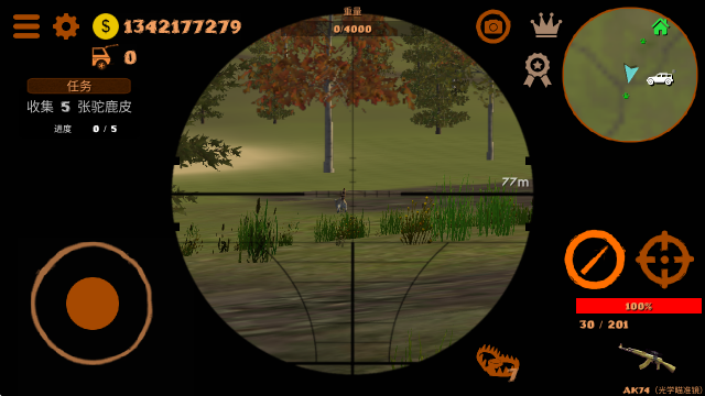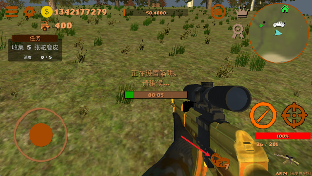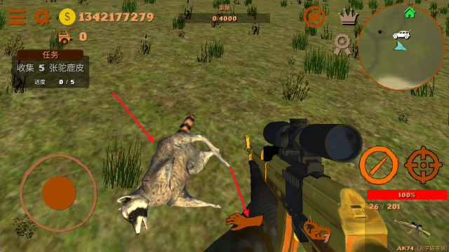 1、拿起你的步枪和弹药,然后出发去寻找不同种类的动物。