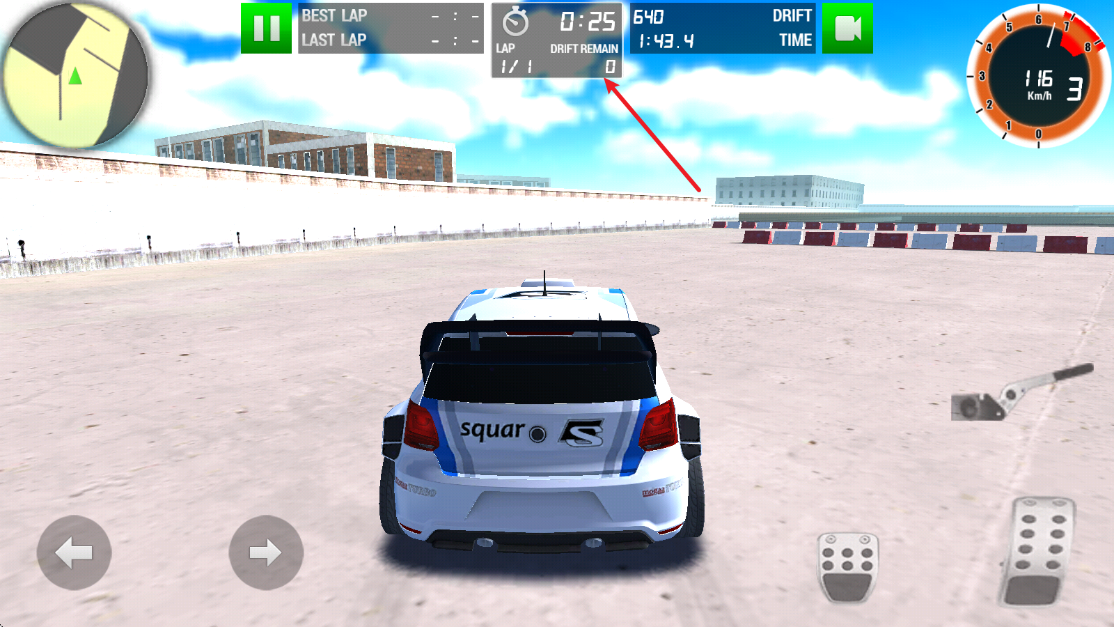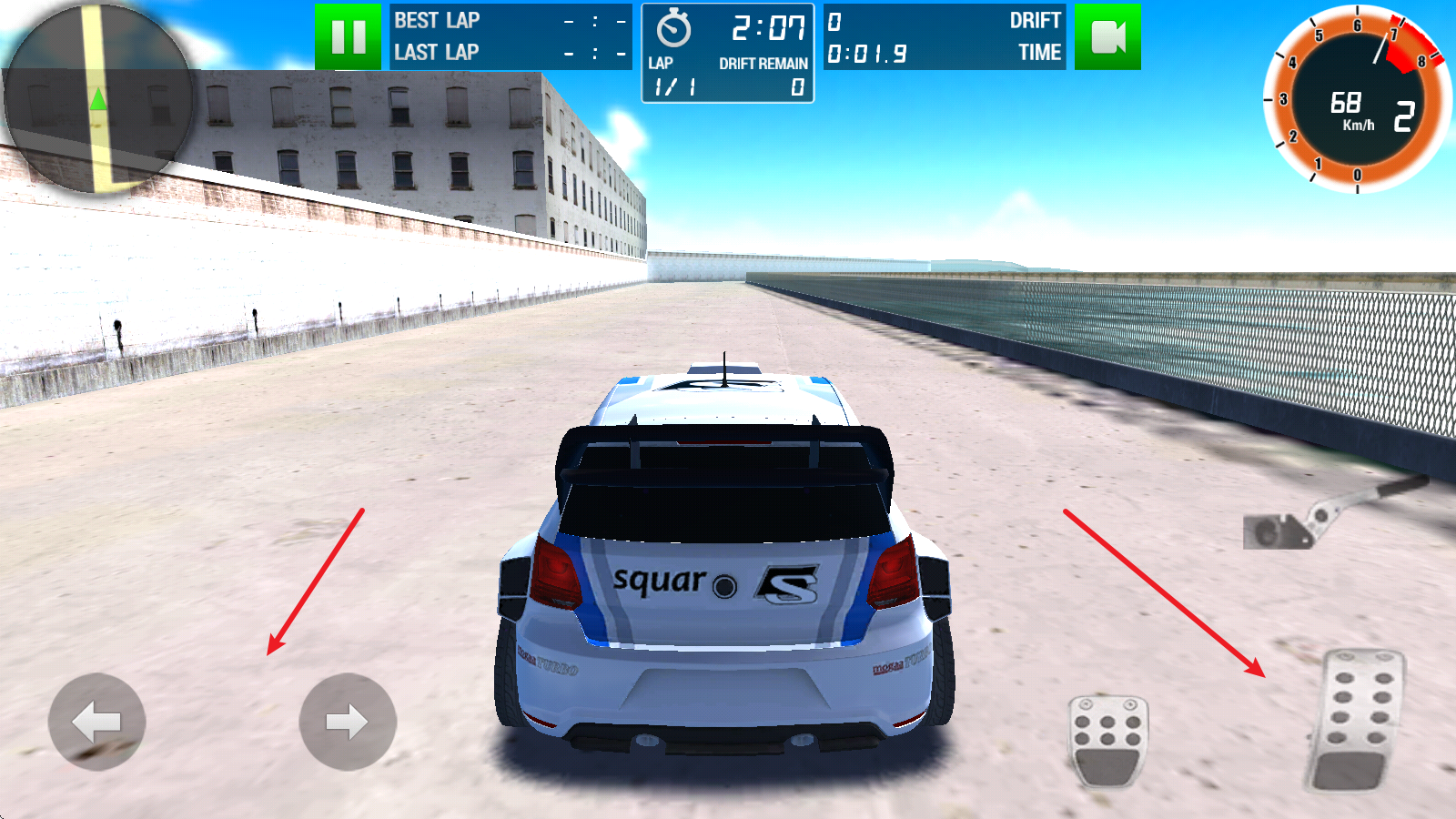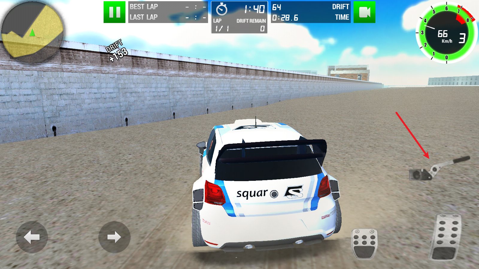 3、赛车过程中,可以通过右侧的手刹进行减速。