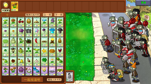 2、进入关卡后你可以选择闯关需要的植物卡牌,选好后点击一起摇滚吧就可以开始闯关。