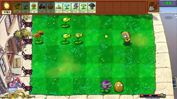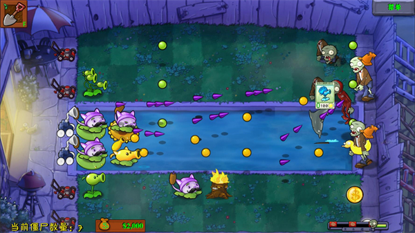 4、每关右下角会显示关卡进度,当进度条满后僵尸会发起一波最后冲锋,此时消灭所有僵尸就可以通关。