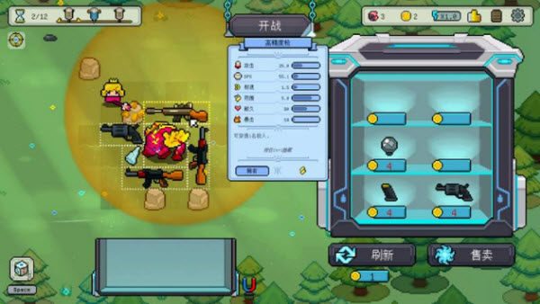 1、在游戏内玩家需要在准备阶段准备防御措施,在有限的空格内布置尽可能多的高级武器。