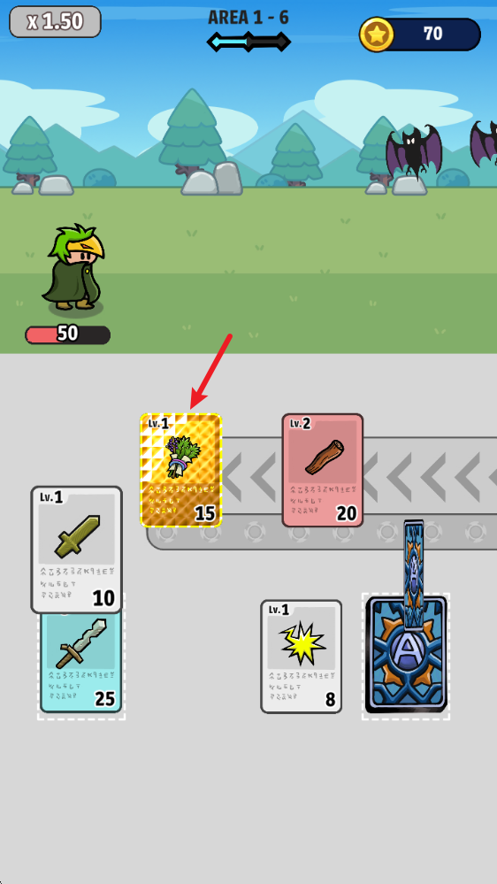 提升你的生命值、传送带速度以及可以带入下一轮的卡牌数量!不断升级,打造你专属的独特卡组!