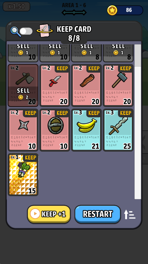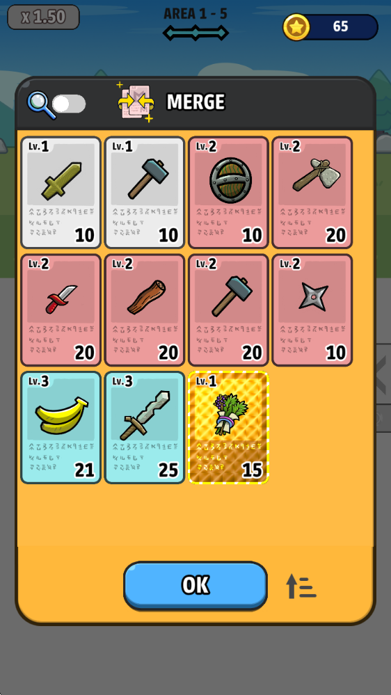 3、每一关过关后,可以将相同等级的卡牌进行合成。