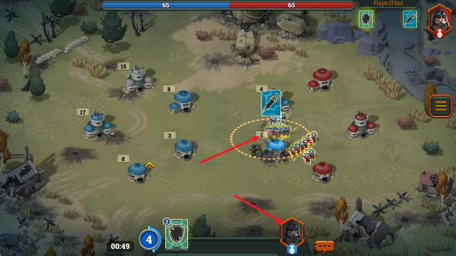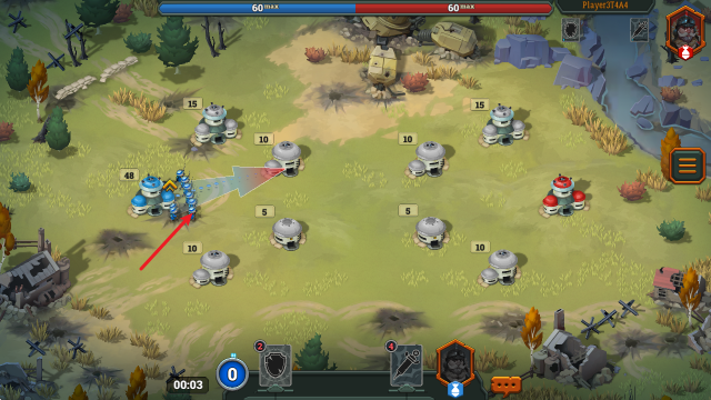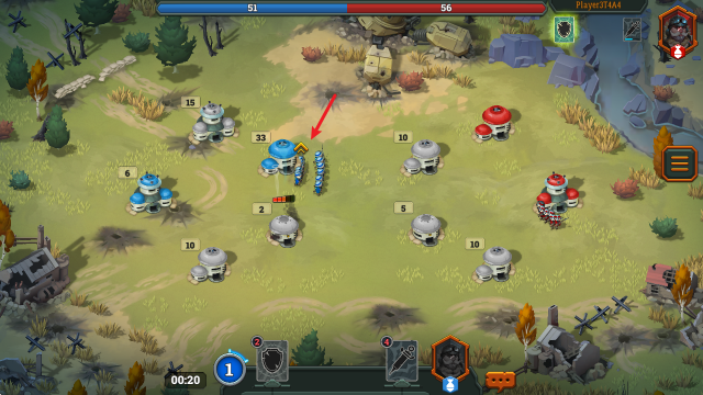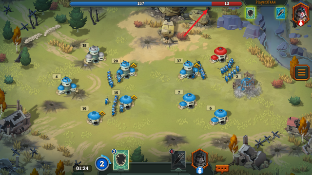 4、我们的目标就是占领对方的塔楼,上方可以看到双方兵力对比。