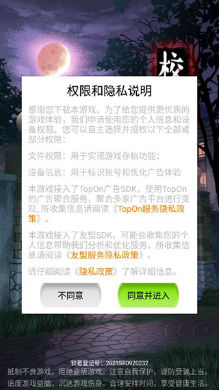1、下载安装本站提供的校怨诡社游戏,进入游戏后需要授予权限;