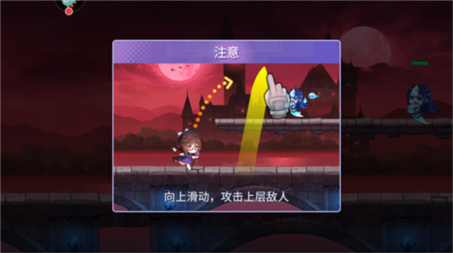 2、例如选择第2种操作方式后,向上滑动就是攻击上方敌人,向下滑动就可以攻击到下方敌人