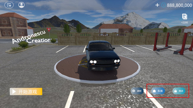 1、打开游戏,在主界面可以看到“车库”和“商店”。车库里可以查看当前拥有的车辆,商店里可以购买新的车辆。