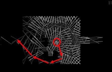 移动的红色线为洞穴怪物。