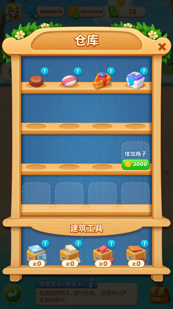 2、相同物品可以进行合成,从而解锁更多物品,以此来完成上方的订单。