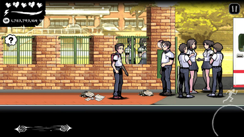 出门遇到老师,对话完了听到尖叫声就赶紧跑吧,到柜子前面时赶紧点对话框不要傻等老师来啊。(进厕所最后一个隔间多好就没事啦,因为是新手教程部分老师已经进来了才躲也没关系。(后面就有关系了!要在老师进来这个房间之前躲好才行不然老师会砍你)