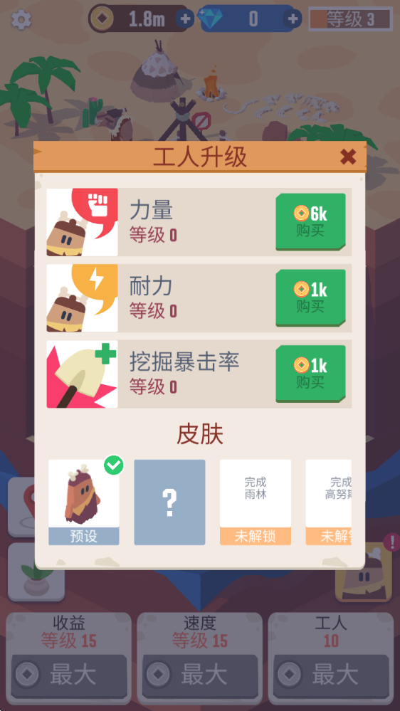 2、通过挖矿即可获得金币奖励,从而去升级属性,提升工人的效率。