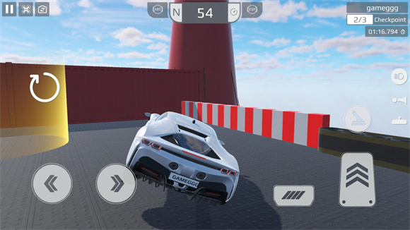 8、驾驶车辆抵达终点就可以完成任务,如果掉落出跑道可以点击左侧的旋转箭头来重置位置。