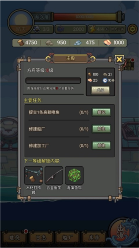 出海意味着玩家要进行新一轮的探索,出海将消耗一格体力。若船体耐久低于200则无法出海。