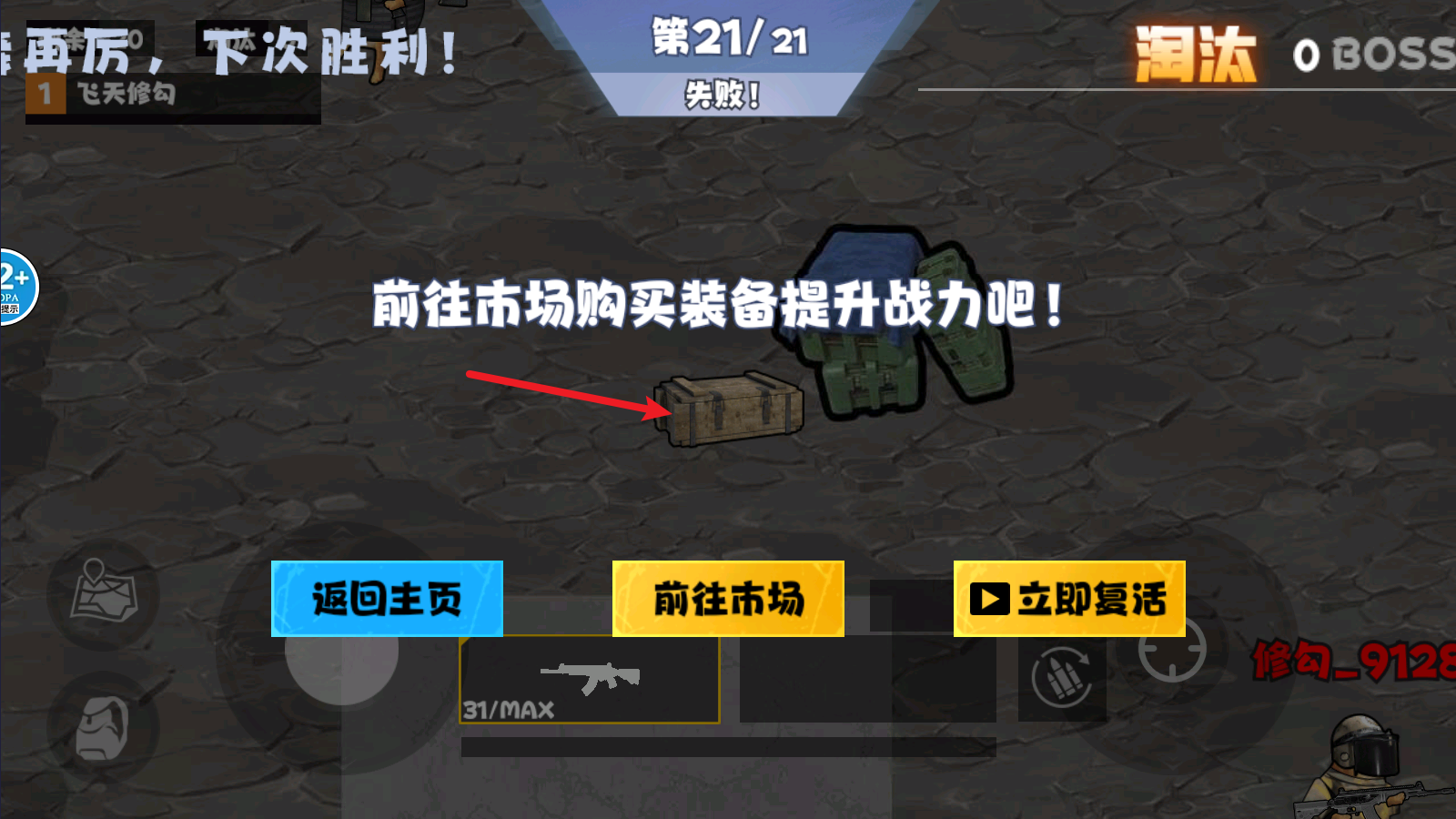 4、如果被其他人击杀,你就会成为盒子,可以选择复活,或者重新开始。