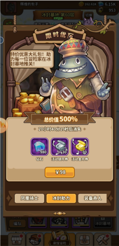 然后就是你阶段的礼包,阶段礼包基本就是让你过渡一段,个人感觉也没必要买吧(有没有都能过没什么质变,区别可能就是你卡关是直接过还是挂机两个小时的区别大概)