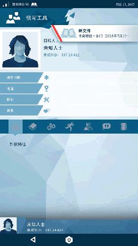 8、这个时候我们需要采集这个女人的信息到我们的档案中,只需要我们将高亮的信息滑到底部的横栏就可以了。