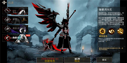1、暗黑剪影美术:2D剪影画风搭配红黑撞色,营造出压抑诡谲的黑暗奇幻氛围,技能特效与怪物设计极具视觉冲击力。