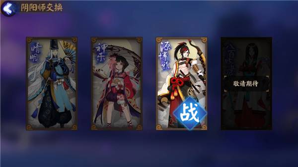 1、阴阳师:游戏中的主角,目前开放安倍晴明、神乐、源博雅三个,可以选中一个进行游戏,在对战中也会上场。