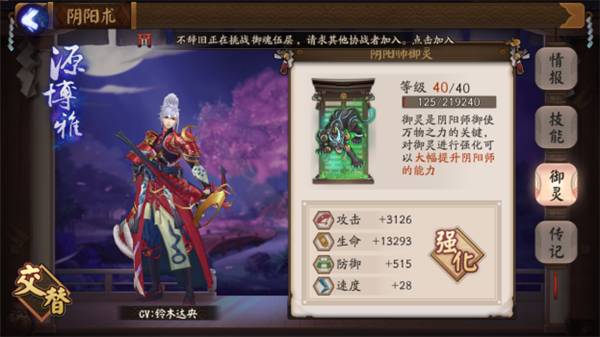 阴阳师的等级也就是玩家等级,三个阴阳师等级共通,但是各自分别还有御灵等级,消耗御魂提升阴阳师的御灵等级可以增加属性(其中速度只能通过御灵等级提升),每五级御灵等级还可以提升一级技能等级。御灵等级越高每级所加属性越多(每级的提升量不是固定的)。建议刚进入游戏的时候优先升级源博雅,因为带狗粮的时候多一个输出点可以多带一个狗粮。55级过后就可以把神乐先升满,现阶段的神乐简直是BUG,被动全体伤害,带狗粮可以1拖5。