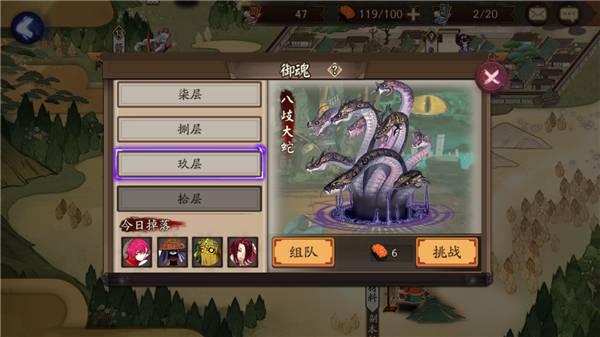 11、妖怪退治:每天的13:00至13:30和20:00至20:30可以打一次妖怪退治,和百鬼夜行一个地方。妖怪就是红蛋、白蛋、黑蛋。打的时候记得一个输出一个控制一个座敷,自己一个式神都不挂获得奖励最高,每死一个都会减少奖励数量。妖怪退治完了以后的半小时内还可以领取一个宝箱。
