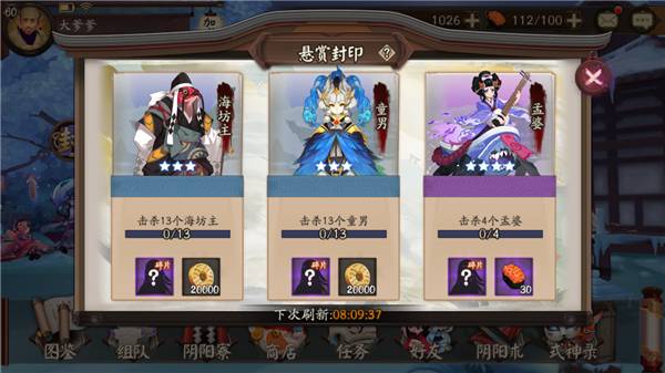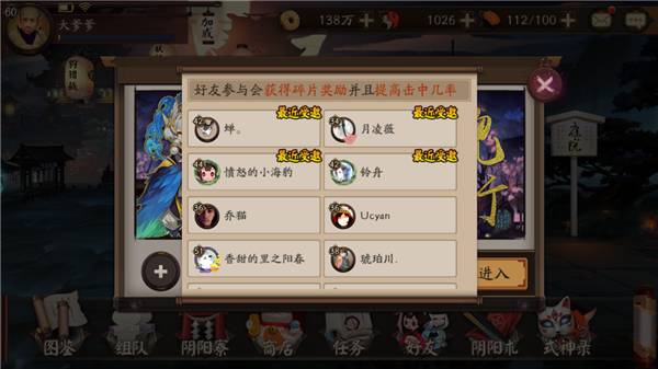 8、式神碎片:当寻找鬼王和探索通关发现妖怪的时候,你的好友也能在式神碎片里获得共享。不过实际游戏过程中很少用到这个。