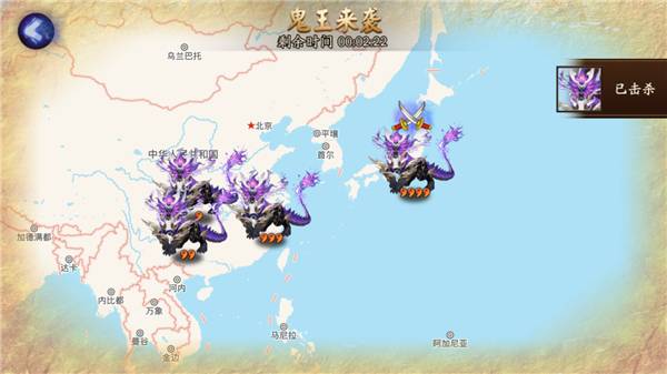 最右下角还有一个地图,地图的位置是现实世界的坐标,点进去以后你能看到附近有中央五角星蓝色的东西,这个就是阴阳寮建立的坐标所在。点开阴阳寮右上角有个补给,每四个小时可以领取10点体力,非洲同胞请记得领取。进入地图界面,右下角有一个寻找鬼王,和领取补给的冷却时间一样,四小时可以寻找一次,这个是发现ssr碎片的重要途径,而且还不需要体力就能打。