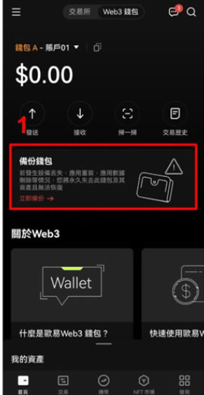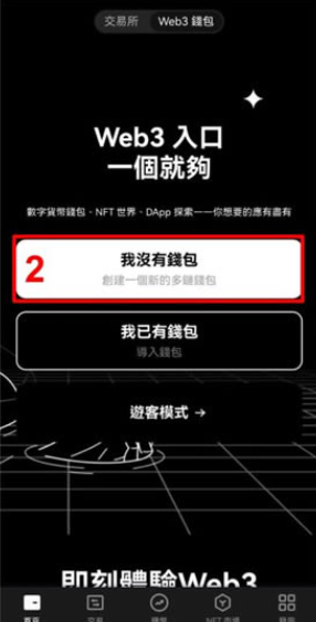 打开 易欧web3 App 切换到 Web3 钱包首页进行「注册」,也就是建立一个属于自己的多链钱包,还没使用过去中心化钱包的话请选择以助记词方式建立,如果已经有冷钱包或是在其他地方例如 MetaMask 创过的话可以在第二步选择导入钱包。