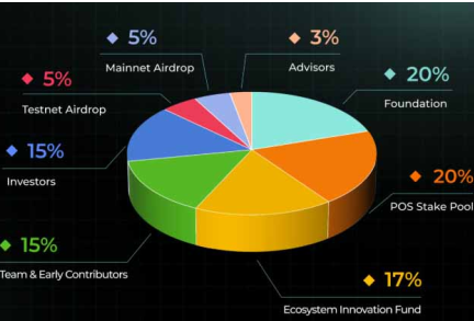 ·20%分配给POS权益池,用于鼓励长期网络安全和权益奖励