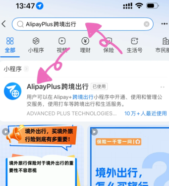 第三步 搜索AlipayPlus跨境出行