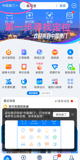 1,打开支付宝,寻找定位;