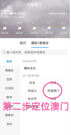 第二步 左上角城市地区 切换 🇲🇴 澳门