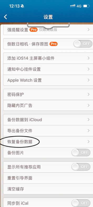 2. 往下滑 找到恢复备份数据;