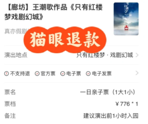 猫眼没有退款入口,这时可以直接联系演出方,不要被平台“不支持退”的条款吓唬到了,这其实是霸王条款。